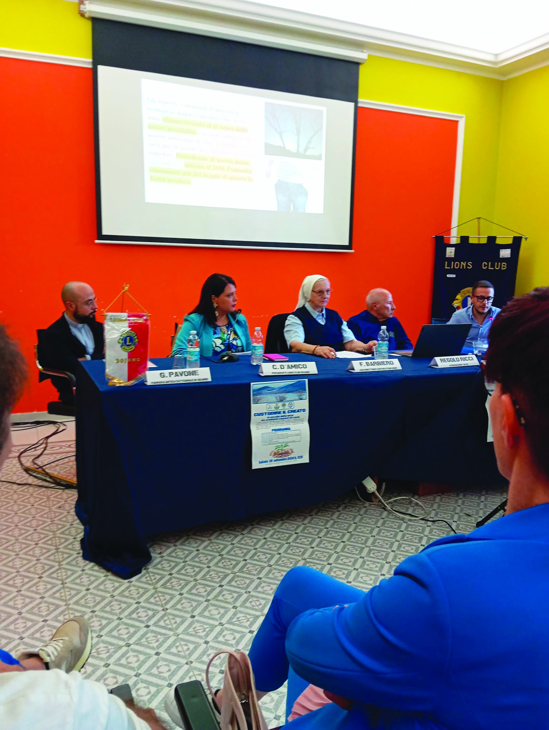Quindi, alle origini del convegno una cooperazione varia: la giovanissima Falco (istituita a Bojano nel 2001 per difendere e promuovere la qualità della vita risvegliando in tutti il Falco simbolo della vita in armonia e simbiosi perfetta con l’ambiente che lo ospita) la meno giovane Opera di Santa Dorotea matesina (risale a circa 40 anni fa) che si “prende cura” evangelicamente delle giovani generazioni e dell’intero territorio di appartenenza, il secolare Lions Clubs International (organizzazione mondiale di assistenza sociale senza scopo di lucro operante in più di 200 paesi del mondo) che è arrivato fino a Bojano. Unione di forze volontarie per affrontare, a dispetto di tante posizioni arrese o peggio disfattiste entrambe irresponsabili, una delle più impellenti sfide epocali del nostro tempo che è la crisi climatica (basti pensare alle 200 e più vittime climatiche degli ultimi uragani statunitensi; per il gruppo scienziati internazionali sul clima dell’Oregon State University: l’emergenza è ormai globale, il pianeta è molto malato. C’è l’urgenza di innescare processi ri-sanatori sui cambiamenti climatici che, per l’inquinamento ambientale causato dall’incuria dell’uomo, provocano in maniera pesante malattie, migrazione, fame e povertà. La chiesa e la scienza concordano sulla necessità di cambiare rotta e di prendersi maggiormente cura del Creato (dott. Regolo Ricci della Falco).