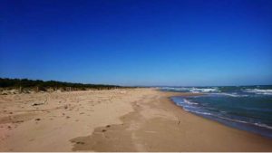 La spiaggia, dove il vento scolpisce morbide dune dorate, è affiancata per oltre due Km da una pineta, che offre ombra e frescura di giorno, mentre inebria l’aria di profumi di eucalipto e resina le sere e le notti stellate estive.