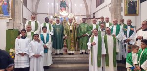 Padre Soy ha poi rispettato i riti di immissione, incensando la statua del Patrono Sant’Agostino e l’altare, e ha poi asperso, con l’acqua benedetta, il popolo.